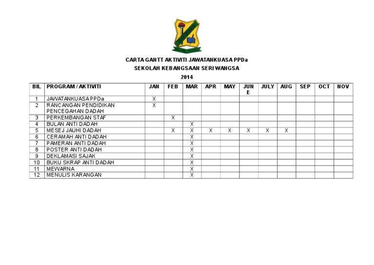 Carta Gantt Aktiviti Anti Dadah Pdf